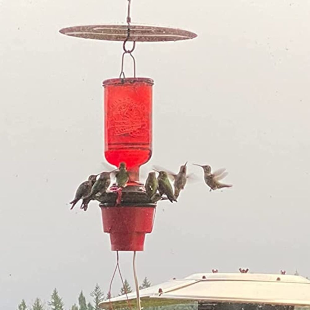 Easy to attach to any round or flat bottom hummingbird feeder, the adjustable clips make sure it stays securely in place and comes with an adjustable sealing ring that prevents snow water from entering.