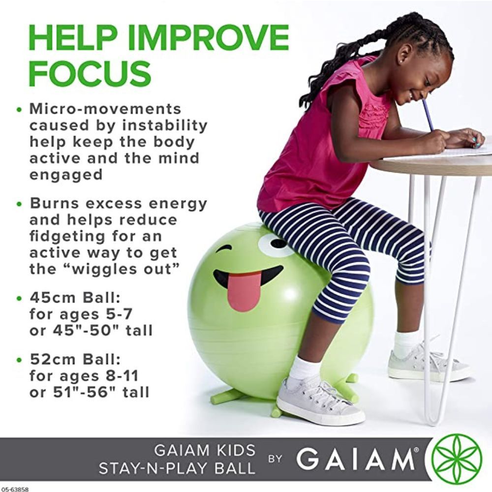 The Gaiam Kids Stay-N-Play Children's Balance Ball Chair is a great way to combine fun and exercise in one convenient package. The chair simulates a yoga ball for kids ages 3-12, allowing them to develop core stability and improve posture while engaging their active minds. Just another type of therapy balls only for helping ADHAD children to do their work.