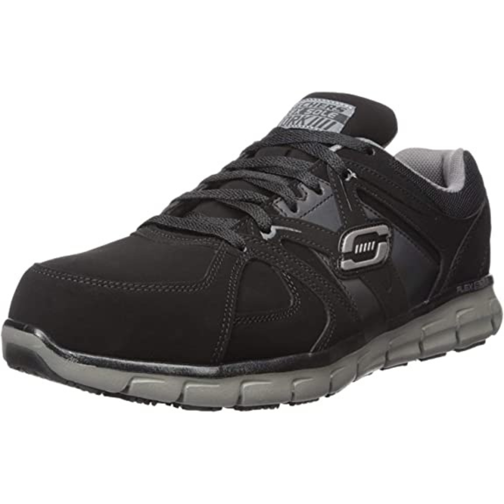 Whether you're on your feet all day or working in somewhat hazardous conditions, the Skechers for Work Men's Synergy Ekron Alloy Toe Work Shoe has you covered.