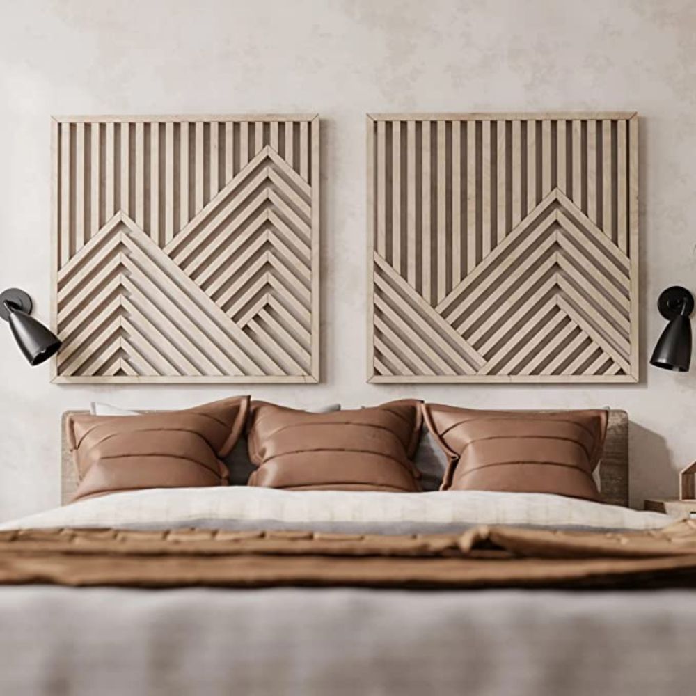 Other Furniture Mountains Wooden Wall Art Set- Large Modern Wood Wall Hangings- Set of 2 Wood Wall Arts- Modern Wood Wall Art Set