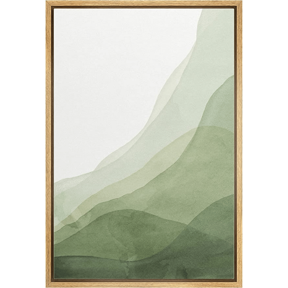 Introducing the MUDECOR Framed Canvas Print Wall Art Abstract Green Gradient Overlay. This beautiful and peaceful piece is perfect for adding a touch of restfulness to any living room decor.