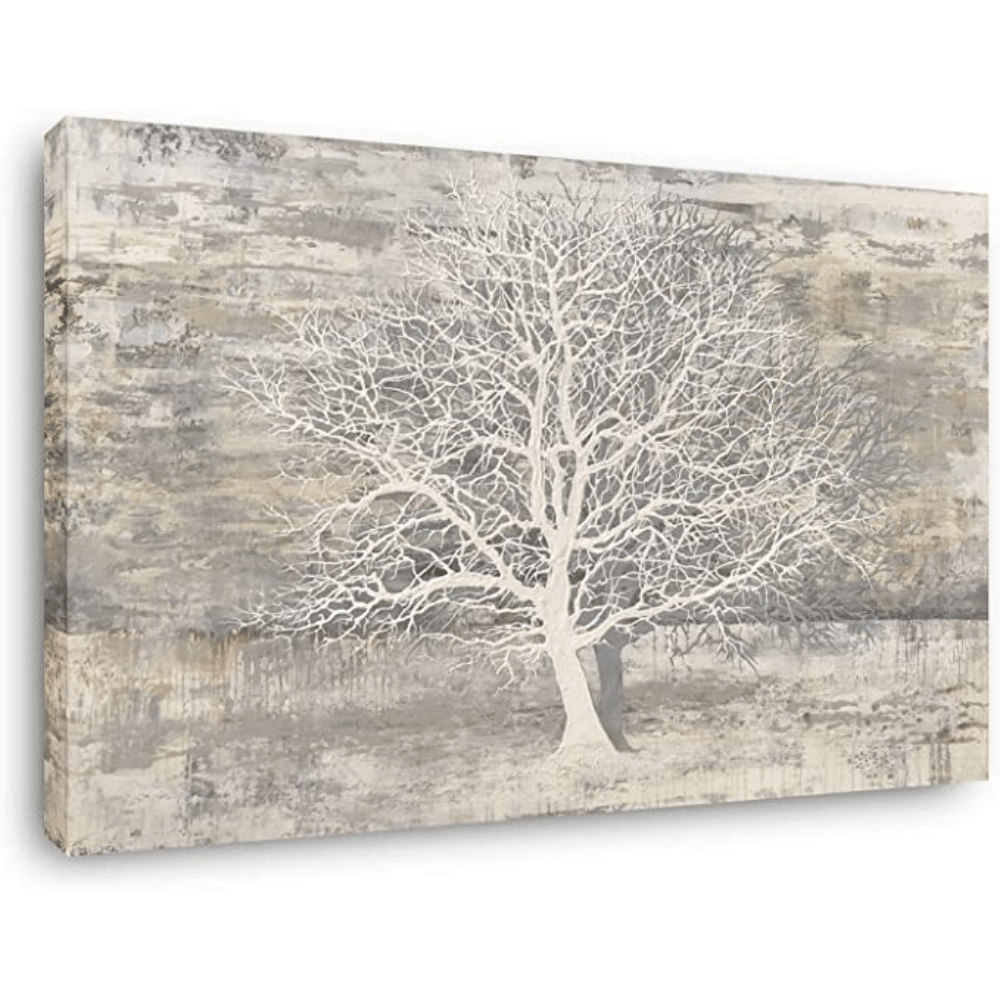 Yihui Arts Tree Of Life Canvas Wall Art Hand Painted Grey White Beige Paintings Modern Abstract Forest Pictures Artwork for Living Room Bedroom Office Decoration
