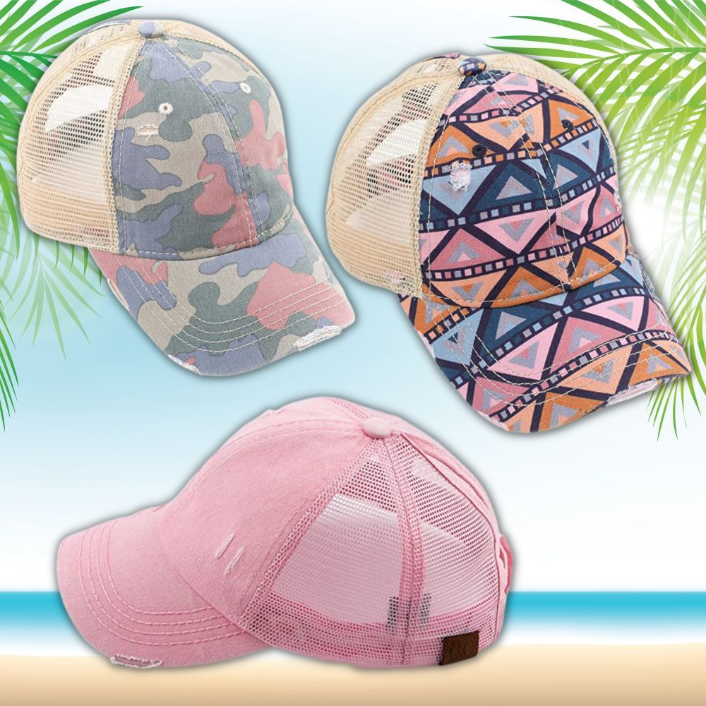 So why settle for a boring old hat when you can have a C.C Washed Distressed Cotton Denim Ponytail Cap? Ship yours today and take your style to the next level!
