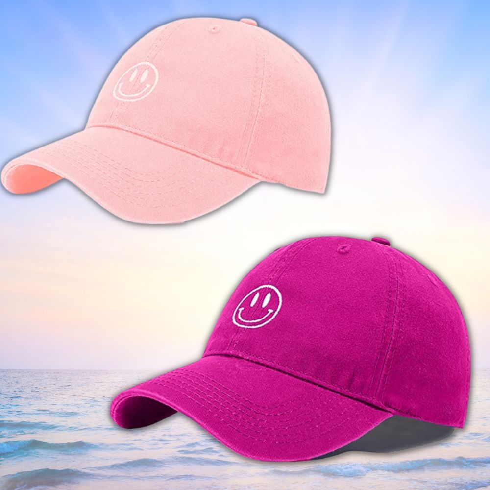 - This pink baseball hat is a great gift option for teens, girls, women, and men who appreciate Y2K culture or smiley face accessories.