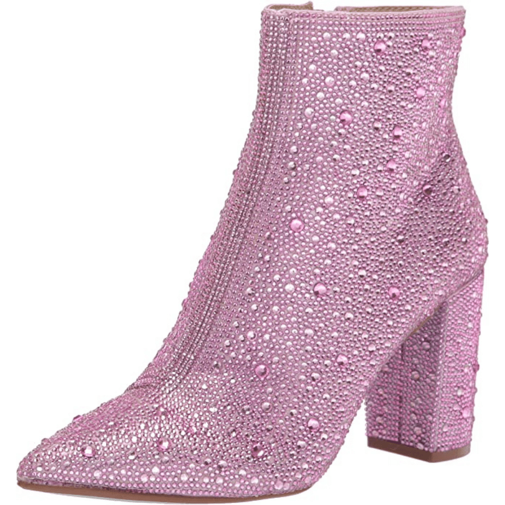 These sassy booties feature a pointed toe and a sturdy, block heel, and are adorned with dazzling rhinestones for a touch of glamour.