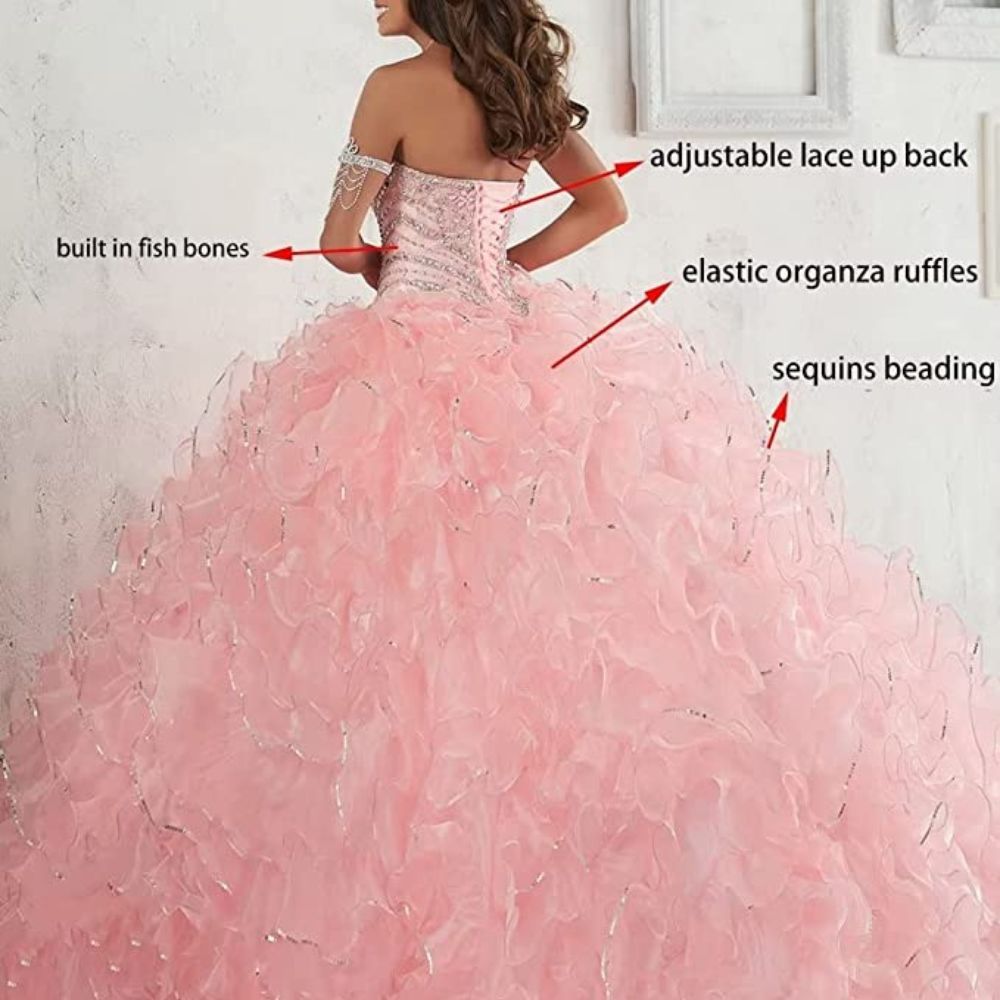 Get ready to steal the show with Lovely Romana Women's Organza Ruffles Quinceanera! This gorgeous dress is perfect for any special occasion, from quinceaneras to prom.