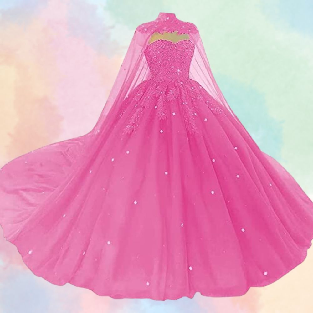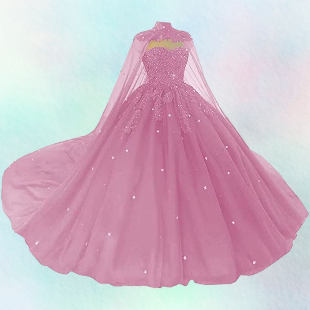 - Sweetheart formal dresses with train, plus size princess birthday gowns, with cape, built-in bra, fully lined, lace-up back
