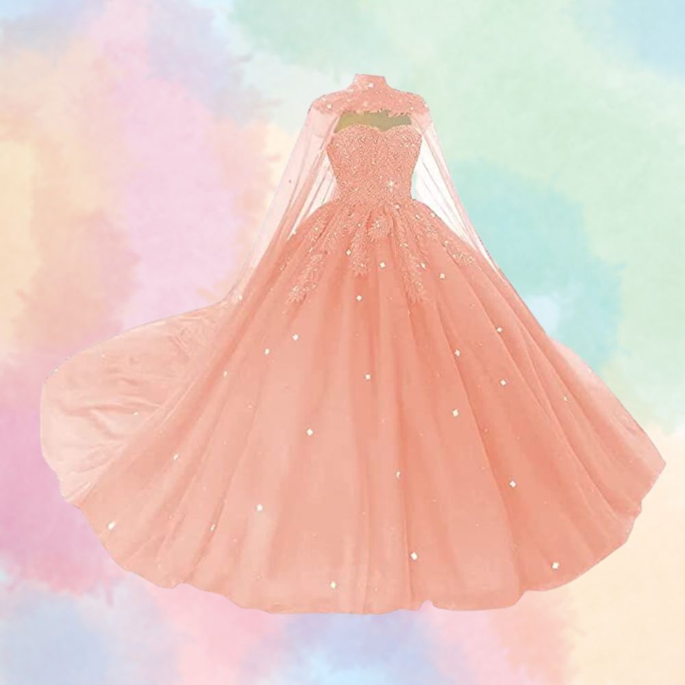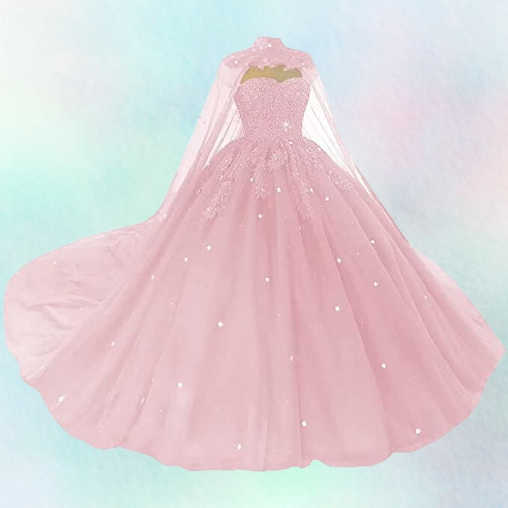 - Sweet 15 dress for girls, puffy tulle quinceanera dresses with cape, sequin beading princess dress, lace appliques quinceanera dress ball gown, prom dress with train