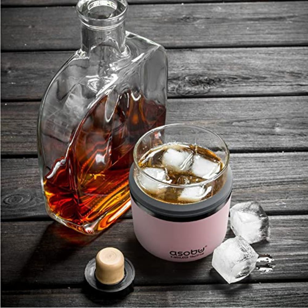 If you're into pink whiskey (or any boozy beverage for that matter), then you'll want to get your hands on the Asobu Whiskey Glass with Insulated Stainless Steel Sleeve.