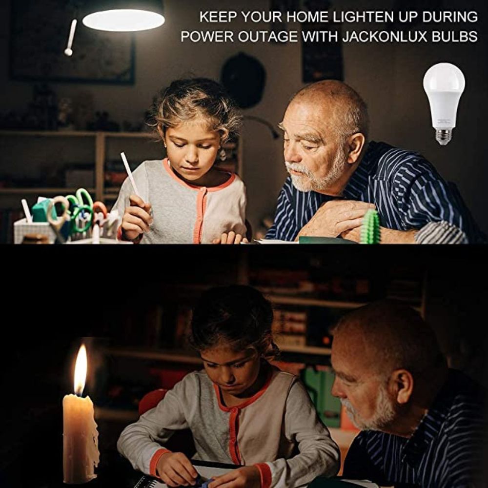 Say goodbye to power outages with JackonLux Rechargeable Emergency Light Bulb! Not only does it work as a regular LED bulb, but when the power goes out, our bulb will keep shining for 3-4 hours.